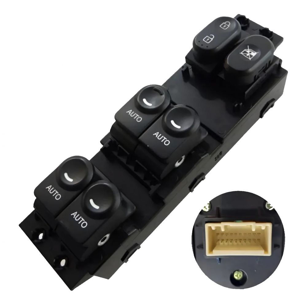 Descrição: Interruptor dos vidros elétricos quádruplo com auto down para todos os vidros, trava das portas e bloqueio dos vidros